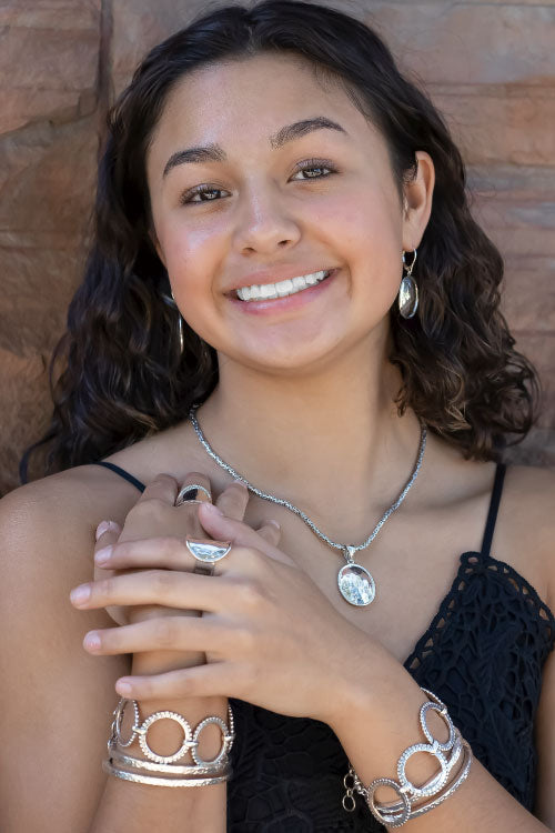 Indiri’s Dasa line features hand-hammered .925 sterling silver jewelry items. To create the...