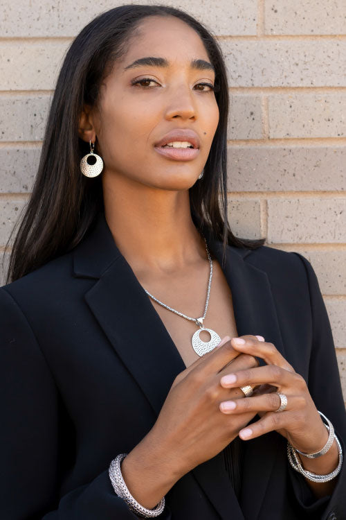 Indiri’s Soho line features contemporary .925 sterling silver jewelry with handmade round...