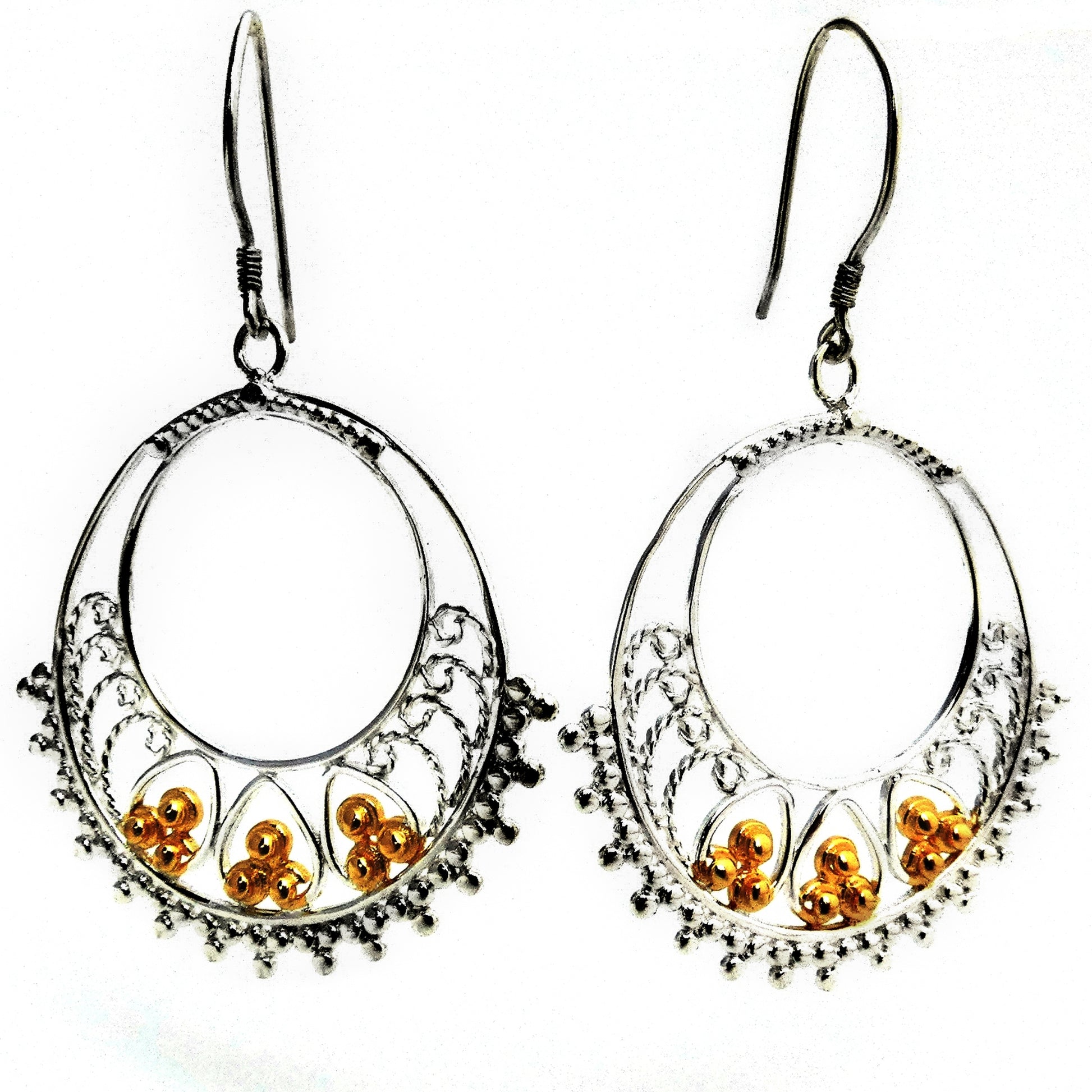 KASI .925 Sterling silver and 18k gold vermeil earrings with handcrafted, ornate rope and bead design. Two-tone. Fair Trade, artisan crafted in Bali.