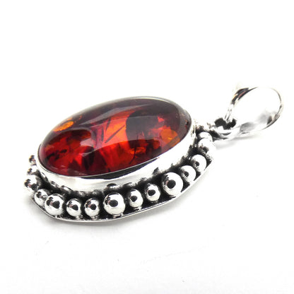 P004AB LIMITED .925 Sterling Silver Oval Amber Beaded Pendant.